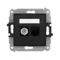Mechanizm gniazda antenowego poj. typu F SAT + gniazda komp. poj. 1xRJ45, kat. 6 ekranowany, 8-stykowy, bez pola opisowego Karlik seria MINI 12MGFKBO-5 kolor czarny mat