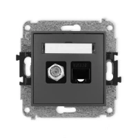 Mechanizm gniazda antenowego poj. typu F SAT + gniazda komp. poj. 1xRJ45, kat. 6 ekranowany, 8-stykowy Karlik seria MINI 28MGFK-5 kolor grafitowy mat