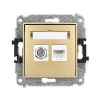 Mechanizm gniazda antenowego poj. typu F SAT + gniazda komp. poj. 1xRJ45, kat. 6 ekranowany, 8-stykowy, bez pola opisowego Karlik seria MINI 29MGFKBO-5 kolor złoty