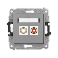 Mechanizm gniazda podwójnego RCA typu cinch - biały i czerwony, pozłacany Karlik seria MINI 27MGRCA-2 kolor szary mat