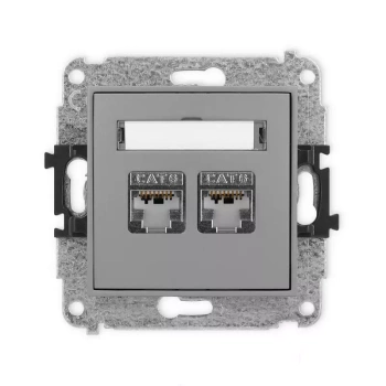 Mechanizm gniazda komputerowego podwójnego 2xRJ45, kat. 6, ekranowany, 8-stykowy, bez pola opisowego Karlik seria MINI 27MGKBO-6 kolor szary mat