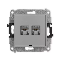 Mechanizm gniazda komputerowego podwójnego 2xRJ45, kat. 8, ekranowany, 8-stykowy Karlik seria MINI 27MGK-12 kolor szary mat