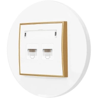 Gniazdo internetowe rj45 2x z ramką okrągłą seria MINI kolor biały mat/złoty