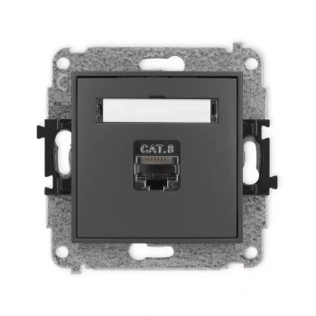 Mechanizm gniazda komputerowego pojedynczego 1xRJ45, kat. 8, ekranowany, 8-stykowy, bez pola opisowego Karlik seria MINI 28MGKBO-11 kolor grafitowy mat