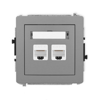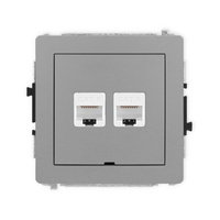 Mechanizm gniazda komputerowego podwójnego 2xRJ45, kat. 7, ekranowany, 8-stykowy Karlik seria DECO 27DGK-10 kolor szary mat