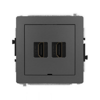 Mechanizm gniazda podwójnego HDMI 2.0, 4K, bez pola opisowego Karlik seria DECO 28DHDMIBO-4 kolor grafitowy mat