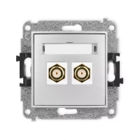 Mechanizm gniazda antenowego podwójnego typu F SAT niklowany Karlik seria ICON 25IGF-2 kolor biały mat