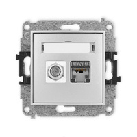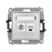 Mechanizm gniazda antenowego poj. typu F SAT + gniazda komp. poj. 1xRJ45, kat. 6 ekranowany, 8-stykowy Karlik seria ICON 7IGFK-5 kolor srebrny metalik