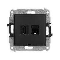 Mechanizm gniazda pojedynczego HDMI 2.0, 4K + gniazda komp. poj. 1xRJ45, kat. 5e, 8-stykowy, bez pola opisowego Karlik seria ICON 12IGHKBO-45e kolor czarny mat