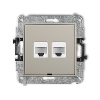 Mechanizm gniazda komputerowego podwójnego 2xRJ45, kat. 8, ekranowany, 8-stykowy Karlik seria ICON 60IGK-12 kolor taupe