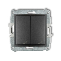 Mechanizm łącznika jednobiegunowego ze schodowym w stylu amerykańskim dwa klawisze bez piktogramów,wspólne zasilanie Karlik seria ICON 11IWPUS-10.11 kolor grafitowy