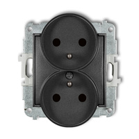 Mechanizm gniazda podwójnego do ramki z uziemieniem 2x2P+Z z przesłonami torów Karlik seria ICON 11IGPR-2zp kolor grafitowy