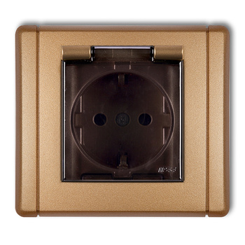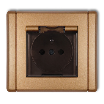 Gniazdo bryzgoszczelne z uziemieniem 2P+Z klapka złoty metalik, bez przesłon torów prądowych Karlik seria LOGO 8LGPB-1z kolor złoty metalik