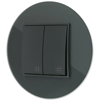 Włącznik krzyżowy podwójny z ramką okrągłą efekt szkła seria ICON kolor grafitowy mat