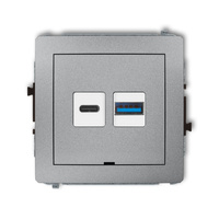 Mechanizm ładowarki USB podwójnej USB C + USB A, 20W max., bez pola opisowego Karlik seria DECO 27DCUSBBO-8 kolor szary mat