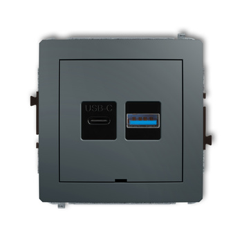 Mechanizm ładowarki USB podwójnej USB C + USB A, 20W max., bez pola opisowego Karlik seria ICON 11ICUSBBO-8 kolor grafitowy