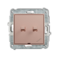 Mechanizm gniazda podwójnego do ramki bez uziemienia 2x2P z przesłonami torów Karlik seria MINI 62MGPR-2p kolor łososiowy