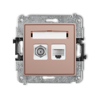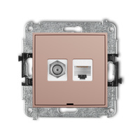 Mechanizm gniazda antenowego poj. typu F SAT + gniazda komp. poj. 1xRJ45, kat. 6 ekranowany, 8-stykowy, bez pola opisowego Karlik seria ICON 62IGFKBO-5 kolor łososiowy