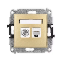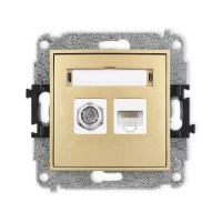 Mechanizm gniazda antenowego poj. typu F SAT + gniazda komp. poj. 1xRJ45, kat. 6, 8-stykowy Karlik seria ICON 29IGFK-3 kolor złoty