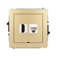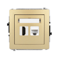 Mechanizm gniazda pojedynczego HDMI 2.1, 8K + gniazda komp. poj. 1xRJ45, kat. 8, ekranowany, 8-stykowy Karlik seria DECO 29DGHK-88 kolor złoty