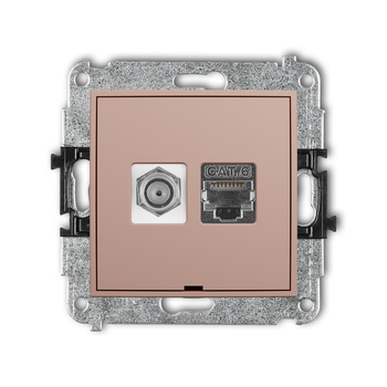 Mechanizm gniazda antenowego poj. typu F SAT + gniazda komp. poj. 1xRJ45, kat. 6 ekranowany, 8-stykowy, bez pola opisowego Karlik seria ICON 60IGFKBO-5 kolor taupe