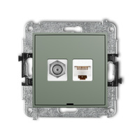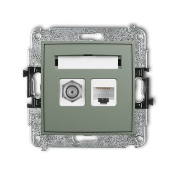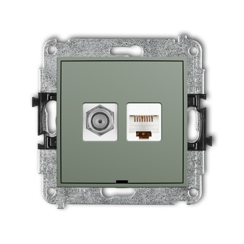 Mechanizm gniazda antenowego poj. typu F SAT + gniazda komp. poj. 1xRJ45, kat. 6 ekranowany, 8-stykowy, bez pola opisowego Karlik seria ICON 61IGFKBO-5 kolor szałwiowy