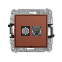 Mechanizm gniazda pojedynczego HDMI 2.0, 4K + gniazda komp. poj. 1xRJ45, kat. 5e, 8-stykowy Karlik seria ICON 63IGHK-45e kolor terakota