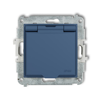 Mechanizm gniazda bryzgoszczelnego z uziemieniem 2P+Z klapka navy blue, przesłony torów prądowych Karlik seria MINI 64MGPB-1zp kolor navy blue