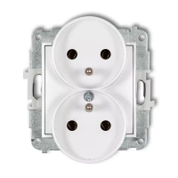 Mechanizm gniazda podwójnego do ramki z uziemieniem 2x2P+Z bez przesłon torów prądowych Karlik seria ICON 25IGPR-2z kolor biały mat