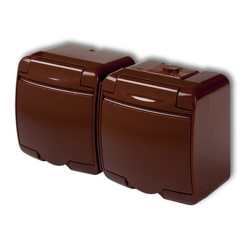 Gniazdo podwójne z uziemieniem SCHUKO 2x2P+Z klapka brązowa; bez przesłon Karlik seria JUNIOR 4GHE-2s kolor brązowy
