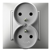 Gniazdo podwójne kompletne z ramką seria SZAFIR kolor Srebro symbol GP-2Z/18