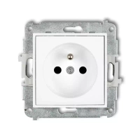 Mechanizm gniazda pojedynczego z uziemieniem 2P+Z bez przesłon torów prądowych Karlik seria MINI 25MGP-1z kolor biały mat