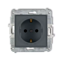 ( ilość produktów: 467 )Mechanizm gniazda pojedynczego z uziemieniem SCHUKO 2P+Z z przesłonami torów Karlik seria MINI 28MGP-1sp kolor grafitowy mat
