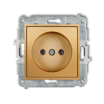 Mechanizm gniazda pojedynczego bez uziemienia 2P z przesłonami torów Karlik seria MINI 29MGP-1p kolor złoty