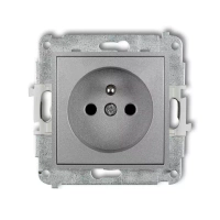 Mechanizm gniazda pojedynczego z uziemieniem 2P+Z z przesłonami torów Karlik seria ICON 7IGP-1zp kolor srebrny metalik