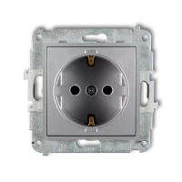 Mechanizm gniazda pojedynczego z uziemieniem SCHUKO 2P+Z z przesłonami torów Karlik seria ICON 7IGP-1sp kolor srebrny metalik