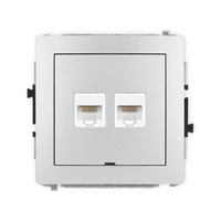 ( ilość produktów: 438 )Mechanizm gniazda komputerowego podwójnego 2xRJ45, kat. 5e, 8-stykowy, bez pola opisowego Karlik seria DECO 7DGKBO-2 kolor srebrny metalik