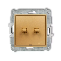 Mechanizm łącznika jednobiegunowego ze schodowym w stylu amerykańskim dwa klawisze bez piktogramów,wspólne zasilanie Karlik seria ICON 29IWPUS-10.11 kolor złoty