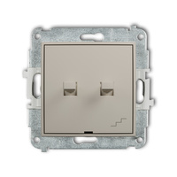 Mechanizm łącznika jednobiegunowego ze schodowym w stylu amerykańskim dwa klawisze bez piktogramów,wspólne zasilanie Karlik seria ICON 60IWPUS-10.11 kolor taupe