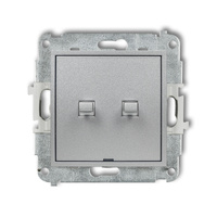 Mechanizm łącznika jednobiegunowego ze schodowym w stylu amerykańskim dwa klawisze bez piktogramów,wspólne zasilanie Karlik seria ICON 7IWPUS-10.11 kolor srebrny metalik