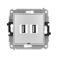 Mechanizm ładowarki USB podwójnej 2xUSB A, 15,5W max., 5V, 3.1A Karlik seria ICON 7ICUSB-6 kolor srebrny metalik
