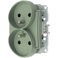 Mechanizm gniazda podwójnego do ramki z uziemieniem 2x2P+Z z przesłonami torów Karlik seria MINI 61MGPR-2zp kolor szałwiowy