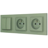 Włącznik pojedynczy i dwa gniazda podwójne z ramką prostą seria MINI kolor szałwiowy