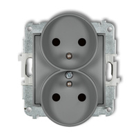 ( ilość produktów: 206 )Mechanizm gniazda podwójnego do ramki z uziemieniem 2x2P+Z bez przesłon torów prądowych Karlik seria ICON 27IGPR-2z kolor szary mat