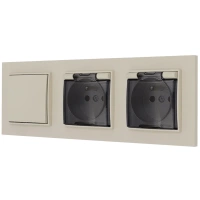 Włącznik podwójny i dwa gniazda hermetyczne z ramką prostą seria MINI kolor taupe