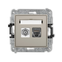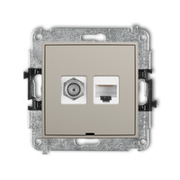 Mechanizm gniazda antenowego poj. typu F SAT + gniazda komp. poj. 1xRJ45, kat. 6 ekranowany, 8-stykowy, bez pola opisowego Karlik seria ICON 60IGFKBO-5 kolor taupe