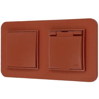 Włącznik podwójny i dwa gniazda pojedyncze z ramką zaokrągloną seria MINI kolor terakota