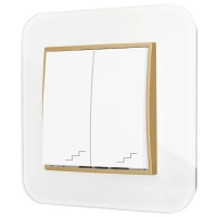 Włącznik schodowy podwójny z ramką kwadratową efekt szkła seria ICON kolor biały/złoty