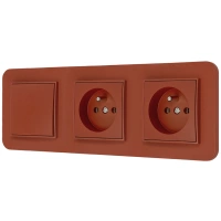 Włącznik pojedynczy i dwa gniazda podwójne z ramką zaokrągloną seria MINI kolor terakota