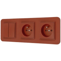 Włącznik pojedynczy i dwa gniazda podwójne z ramką kwadratową seria MINI kolor terakota
